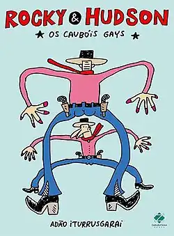 - Adão Iturrusgarai criou a dupla homossexual Rocky e Hudson para ironizar o "machismo gaucho" mas por achar que seria um tema muito regional, os transformou em caubóis gays.[2] A primeira publicação foi na revista gaúcha "Dun-Dun". O nome é uma alusão ao ator Rock Hudson, famoso por papéis em filmes de faroeste e que assumiu a homossexualidade.[6] Na época do lançamento da animação eram publicados na revista "Big Bang Bang" da Circo Editorial e na revista gay "Sui Generis".[2]