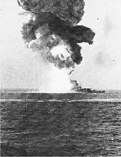 Os Do 217 alemães seguiram a frota por algum tempo, porém os italianos não dispararam contra as aeronaves; elas estavam a uma distância que impedia de distingui-las como inimigas ou amigas, e Bergamini acreditou que eram o suporte aéreo prometido pelos Aliados. O Roma e o Italia foram atacados às 15h37min e a frota entrou em ação, com as baterias antiaéreas abrindo fogo e as embarcações iniciando manobras evasivas. O Italia foi atingido quinze minutos depois, a bombordo, embaixo de sua torre de artilharia dianteira, enquanto o Roma também foi atingido no mesmo lado. Essa bomba atravessou todo o couraçado e detonou embaixo da quilha, danificando a viga do casco e permitindo que água inundasse a sala de máquinas traseira e duas salas de caldeiras. Isto fez com que as duas hélices internas parassem de funcionar por falta de potência, e também criou vários incêndios de arco elétrico na parte traseira do navio.[17][19]