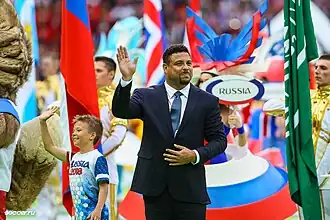 Ronaldo Luís Nazário de Lima (Itaguaí, 18 de setembro de 1976),[4] conhecido como Ronaldo Fenômeno ou simplesmente Ronaldo, é um ex-futebolista brasileiro que atuava como centroavante.[5] Amplamente reconhecido como um dos maiores jogadores da história do futebol[6], destacou-se pelas arrancadas, dribles e finalizações,[7] e foi eleito Melhor Jogador do Mundo pela FIFA em 1996, 1997 e 2002.[8] Após encerrar a carreira, tornou-se empresário e presidiu o Valladolid, da Espanha, entre 2018 e 2025, quando vendeu sua participação majoritária.[9][10]