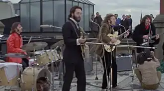 Quadro do vídeo da performance de "Don't Let Me Down", retirado do documentário Let It Be.