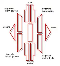 Laban utiliza as figuras geométricas para dar suporte à movimentação do ator-dançarino. Ele propõe a escala dimensional, respeitando a relação entre altura, largura e comprimento das figuras geométricas como o cubo, o tetraedro, o octaedro, o icosaedro e o dodecaedro; tais representações geométricas viabilizavam movimentos pl (vertical), (horizontal), (sagital)e nos níveis alto, médio e baixo. Dessa forma, ações dramáticas podem ser realizadas nas posições das vértices dessas figuras, bem como em suas diagonais, de forma que o ator atua ampliando a sua kinesfera, buscando uma limpeza gestual e organicidade, assim, ele também amplia seu espaço cênico.
