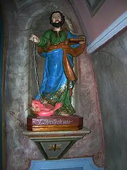 Apesar de rara (?) em Portugal , em Itália, alguma da sua iconografia impunha a representação de um homem esfolado trazendo ao ombro a sua pele. É nesta condição que Miguel Ângelo o representou no Juízo Final da Capela Sistina em Roma. Não é caso único. Encontramos variantes na pintura de Matteo di Giovanni (1430 – 95) e nas esculturas de Marco D’Agrate (1504 – 71), Catedral de Milão, ou Pierre Le Gros, o Jovem (1666 – 1719), São João de Latrão em Roma.