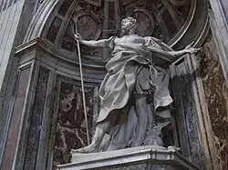 Em 1627, Bernini substituiu Carlo Maderno como arquiteto-chefe da Basílica de São Pedro, passando a ser o responsável por todos os projetos da basílica até 1647. Todavia, o artista não só supervisionou a adição das decorações e afrescos, mas foi ele próprio responsável pela criação de várias dessas obras, incluindo uma escultura de São Longuinho.[2]