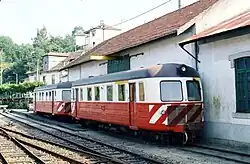 Duas automotoras da série 9100, parqueadas na estação de Livração, em 2003.