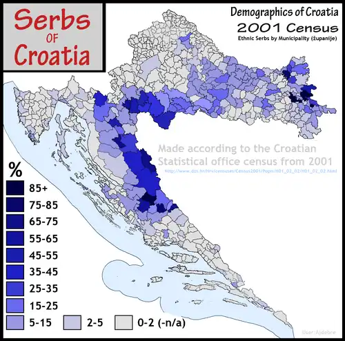 Um grande número de sérvios migraram para o norte e oeste, em 1538, quando o Kaiser Fernando I, governante do Império Habsburgo ofereceu refúgio e solução permanente para os sérvios deslocados (Rasca), fugindo dos turcos, colocando-os sob a administração militar austríaca. A nova região militar estabelecida foi chamada Militärgrenze ou fronteira militar. Em troca de serviços militares, os sérvios receberam terra e não eram tributados.[1] Embora os sérvios eram uma parte de diversos Estados e impérios cambiantes, um grande número continuou a viver no território da atual Croácia. Os dados mais recentes aproximam a população sérvia a ser 201.631. Em 22 de Dezembro de 1990, o Parlamento da Croácia alterou a constituição, igualando os sérvios da Croácia com outras minorias nacionais[2] e empatou a sua posição com outras minorias. O percentual dos que se declaram como sérvios, segundo o censo de 1991, foi de 12,2% (78,1% da população declarou-se croata). Isto foi lido como a tirada de alguns dos direitos dos sérvios concedidos pela Constituição socialista anterior. Hoje maioria dos sérvios são capazes de regressar à Croácia legalmente. Entretanto, na realidade uma maioria dos sérvios deixaram durante a evacuação organizada[3][4][5][6] em 1995, optaram por permanecer como cidadãos de outros países em que obtiveram cidadania. Por isso, hoje os sérvios constituem 4% da população da Croácia, contra a população antes da guerra de 12%.