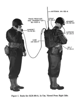 - ↑ Niesel, John. «The SCR-300 Backpack Radio». warfarehistorynetwork.com. Sovereign Media. Consultado em 28 de dezembro de 2018