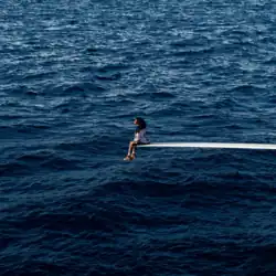 "Originalmente, eu deveria estar no topo de um navio de carga, mas quando eu estava pesquisando referências, achei essa foto da Diana. Eu apenas amei a sensação de isolamento que ela demonstra, e foi isso que eu quis transmitir. E então, no último minuto, não obtivemos autorização para obter as barcaças que queríamos e pensamos: 'Vamos construir o trampolim em vez disso. Ainda vamos tentar. 'Não rejeitamos o barco completamente e tentamos e ficou legal e eu não tinha certeza se seria muito legal até, tipo, agora."