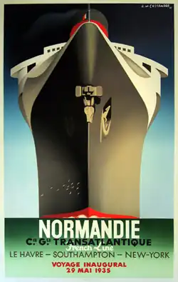O SS Normandie foi um navio de passageiros francês operado pela Compagnie Générale Transatlantique e construído pela Chantiers de Penhoët em Saint-Nazaire. Seu projeto foi iniciado no final da década de 1920 com o objetivo de dar continuidade ao SS Île de France. Sua construção começou em janeiro de 1931, porém a Grande Depressão atrapalhou as obras e adiou sua viagem inaugural até maio de 1935. O Normandie tinha o objetivo de ser um símbolo do requinte e luxo francês, além de dar ao país sua primeira Flâmula Azul de travessia transatlântica mais rápida.