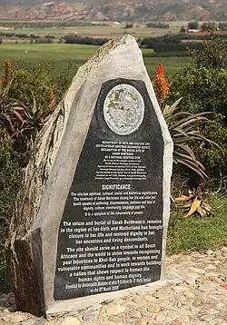 - ↑ a b c Davie, Lucille (14 de maio de 2012). «Sarah Baartman, at rest at last». SouthAfrica.info. Consultado em 6 de agosto de 2012