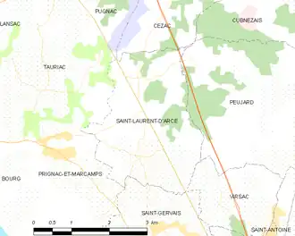 - ↑ «Résultats du recensement de la population - Saint-Laurent-d'Arce». Insee[ligação inativa]