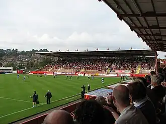 O estádio é uma mistura do antigo e do moderno. De um lado está a velha arquibancada que foi originalmente inaugurada em 1926. Todos os lugares são para espectadores sentados, possui cobertura e tem vidros nas laterais da arquibancada para proteção contra ventos e chuva. No entanto, essa arquibancada é, em tamanho, cerca da metade do comprimento do campo e, embora parte dela atravesse a linha do meio de campo, ela ocupa apenas 50% da linha lateral.[4] Isto significa que a área restante não é utilizada para os espectadores, pois não há arquibancada. Apesar de não ser facilmente evidente de uma perspectiva de dentro do estádio, isto é devido à grande proximidade de uma linha de trem, que passa exatamente atrás dessa lateral do estádio, diminuindo assim o terreno onde está a arquibancada.
