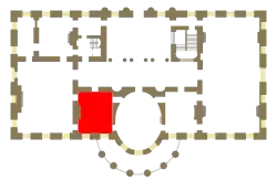 O desenho de Benjamin Henry Latrobe de 1803 do primeiro andar da Casa Branca indica que a sala serviu como vestíbulo para o presidente.