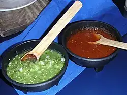 As salsas mexicanas são tradicionalmente produzidas com um almofariz chamado molcajete. Nas cidades, o uso de liquidificadores é mais comum.