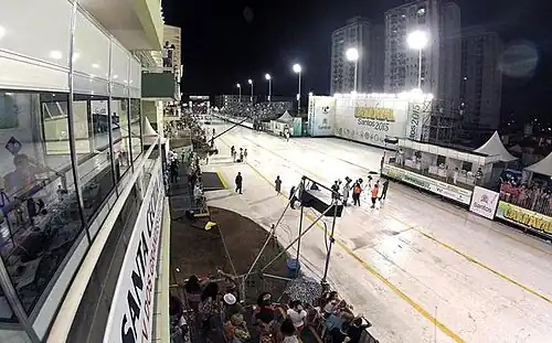 - ↑ Santos, Do G1 (7 de janeiro de 2016). «Arquibancadas são montadas na Passarela do Samba em Santos». Carnaval 2016 em Santos. Consultado em 7 de janeiro de 2020