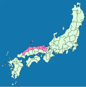 A região foi estabelecida como parte do Gokishichidō (cinco províncias e sete circuitos) durante o Período Asuka (538-710), e consistia das seguintes oito províncias: Tanba, Tango, Tajima, Inaba, Hōki, Izumo, Iwami e Oki.[2] Entretanto, esse sistema foi desaparecendo ao longo dos séculos a partir do Período Muromachi (1333-1467).