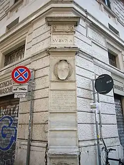 - ↑ «Strade della Roma Papale: Piazza della Suburra – Edicola Lapide» (em italiano). Il Libro del passato