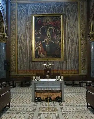 - A peça-de-altar do altar-mor, "Santíssima Trindade com Anjos e São Tomás de Cantuária e o rei Edmundo", de Durante Alberti (c. 1583);