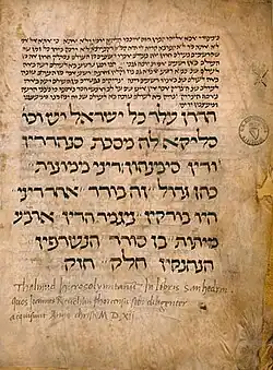 O tratado talmúdico denominado Sanhedrin (hebraico: סנהדרין ou "Sinédrio") é um dos dez tratados da Seder Nezikin ("Ordem de Danos", uma seção do Talmude Babilônico que trata de danos e procedimentos civis e criminais). Originalmente formou um tratado junto com Makkot ("Açoites"), que também trata do direito penal.[1] A Guemará deste tratado é notável como precursora do desenvolvimento de princípios do direito consuetudinário, por exemplo, a presunção de inocência e a regra de que uma condenação criminal exige a concordância de todos os doze membros do júri. Este tratado é encontrado na Mishná e na Guemará.[2]