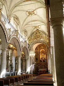 O altar principal deslumbra pela sua grandiosidade, assim como pela beleza da sua talha dourada e imagens. Perto deste altar localiza-se um órgão dos finais do século XVIII.