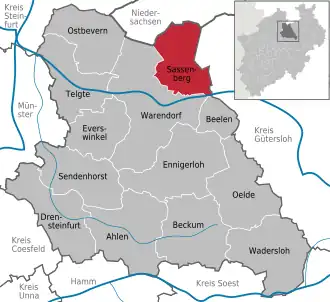 | Localização de Sassenberg no distrito de Warendorf | |