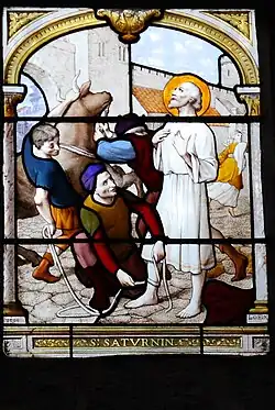 - ↑ a b Trecho baseado no artigo «Saturnin de Toulouse» na Wikipédia em francês (acessado nesta versão).