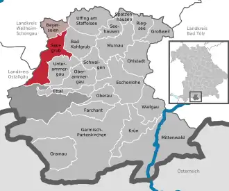 | Localização de Saulgrub no distrito de Garmisch-Partenkirchen | |