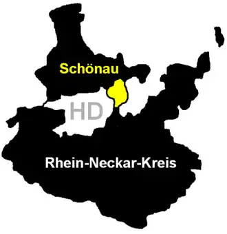 | Localização de Schönau no distrito de Rhein-Neckar-Kreis | |