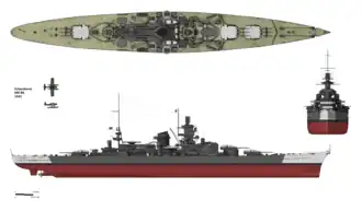 | Armamento | 9 canhões de 283 mm 12 canhões de 149 mm 14 canhões de 105 mm 16 canhões de 37 mm 10 a 38 canhões de 20 mm 6 tubos de torpedo de 533 mm |