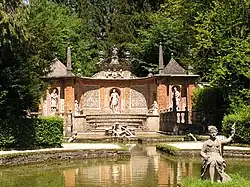A antiga alameda de tílias (chamada de Fürstenweg - Caminho dos Príncipes) para Salzach – também muito estendida na paisagem – marca o eixo dos edifícios do palácio e do tanque em estrela.
