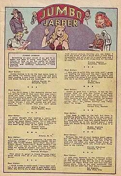 A primeira seção de cartas em quadrinhos registrada apareceu em Target Comics # 6, publicada pela Novelty Press em 1940. (A página em questão também tem uma menção inicial ao colecionismo de quadrinhos.)[6] A primeira revista em quadrinhos da DC Comics a incluir uma seção de cartas foi Real Fact Comics #3 (julho-agosto de 1946). [7]O primeiro título da DC com uma seção de cartas como recurso regular foi Superman começando com a edição 124 (setembro de 1958).[8][9]