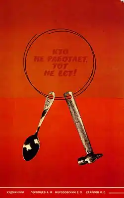Criticando Stalin, Leon Trótski escreveu que: "O velho princípio: quem não trabalha não come, tem sido substituído por outro: quem não obedece não come".[14]