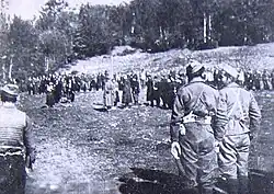 - ↑ Additionally, some 100,000 people were imprisoned in the post-1944 period for violations of the law for the "protection of Macedonian national honor," and some 1,260 Bulgarian sympathizers were allegedly killed.