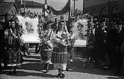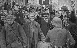 - ↑ In Macedonia, eyewitnesses recall and newsreel footage shows that the local Macedonian population went out to greet the Bulgarian troops who had helped remove the Yugoslav yoke, and that they waved Bulgarian flags.