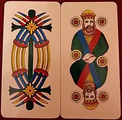 Dama de Copas ou Rei de Ouros, consoante o baralho utilizado.