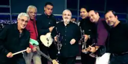 ![]() Sexteto do Jô em meados de 2014. Da esquerda para a direita: Miltinho, Bira, Carlos Tomati, Jô Soares, Chiquinho Oliveira, Derico e Osmar Barutti. | |