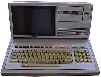 | Display | monitor monocromático de 9" embutido; texto (40×25 linhas ou 80×25 linhas) e gráfico (opcional, 320×200 pixels). |