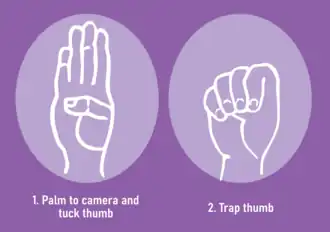 - ↑ Alexandra, Jardine (4 de maio de 2020). «This simple hand signal sends an alert about domestic abuse during the coronavirus crisis». AdAge. Consultado em 7 de maio de 2020