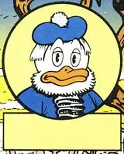 É mencionado na história "O Segredo do Castelo", de Carl Barks e depois apareceu na árvore genealógica da Família Pato, de Don Rosa. Nasceu na Escócia em 1159 e foi enterrado no cemitério da família. Sua armadura foi colocada no hall de entrada do castelo.