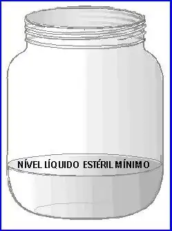 Adicionar, de acordo com o volume do frasco, 250 ml ou 500 ml de solução fisiológica estéril ou água destilada estéril no novo frasco coletor, de modo a atingir a marca do nível líquido mínimo obrigatório.