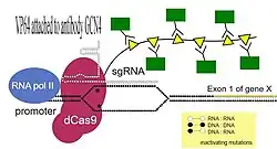- ↑ Chavez A, Scheiman J, Vora S, Pruitt BW, Tuttle M, EP, et al. (Abril de 2015). «Highly efficient Cas9-mediated transcriptional programming». Nature Methods. 12 (4): 326–8. PMC 4393883