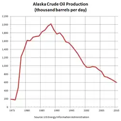 - ↑ «Fossil Energy – Alaska Oil History» [Energia Fóssil – História do Petróleo no Alasca]. National Energy Technology Laboratory. Consultado em 9 de setembro de 2025. Cópia arquivada em 25 de abril de 2009