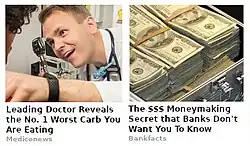 - ↑ Wingfield, Nick; Isaac, Mike; Benner, Katie (15 de novembro de 2016). «Google and Facebook Use Ad Policies to Take Aim at Fake News Sites» [Google e Facebook usam políticas de anúncios para combater sites de notícias falsas]. The New York Times. p. B.1. ProQuest 1838917508. Consultado em 17 de junho de 2025