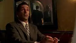![]() Don Draper conversa com um garçom na primeira cena do episódio e da série. | |||