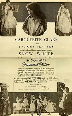 Snow White é um filme mudo de fantasia romântica americano de 1916 dirigido por J. Searle Dawley. Foi adaptado por Winthrop Ames de sua própria peça da Broadway de 1912, Branca de Neve e os Sete Anões, que por sua vez foi adaptada do conto de fadas de 1812 (coletado pelos irmãos Grimm). O filme é estrelado por Marguerite Clark e Creighton Hale, Clark reprisando seu papel no palco.[2]