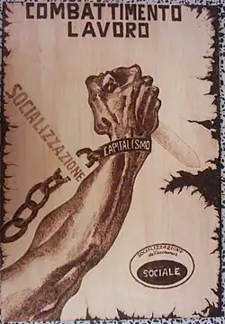 Após a libertação, pelas forças nazistas, de Benito Mussolini em setembro de 1943, Mussolini estabeleceria o Partido Republicano Fascista como sucessor do Partido Nacional Fascista. Mussolini retomaria as ideias de Ugo Spirito[4] e junto com Nicola Bombacci, que se inspirou nas ideias do anarquista Ivanovyč Nestor Machno, no socialismo fabiano e no distribucionismo geseliano, desenvolveria o conceito de "socialização da economia". Essas idéias foram refletidas na Carta de Verona, que foi aprovado em 14 de novembro de 1943, estabelecendo:[18]
