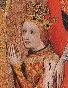 Retrato de Venceslau IV presente no Painel Votivo de Han Očko de Vlašim, localizado na Galeria Nacional de Praga.