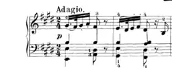 Beethoven compôs o segundo movimento em uma tonalidade fora dos padrões esperados - Numa sonata em Dó maior, o segundo movimento é em Mi maior! - atingindo um contraste interessante.