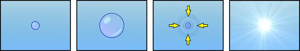 A sonoluminescência pode ocorrer quando uma onda de som com intensidade suficientemente grande induz uma cavidade gasosa dentro de um líquido para rapidamente eclodir. Esta cavidade pode assumir a forma de uma bolha preexistente ou pode ser gerada por meio de um processo conhecido como cavitação. Sonoluminescência no laboratório pode ser feita para ser estável, para que uma bolha única se expanda e recolha repetidamente de forma periódica, emitindo luz cada vez que recolhe. Para que isso ocorra, uma onda acústica permanente é configurada dentro do líquido e a bolha vai se formar num antinodo de pressão. As frequências de ressonância dependem da forma e do tamanho do ressonador no qual a bolha está contida.