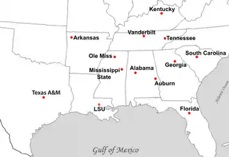 - ↑ ESPN. «Southeastern Conference». Consultado em 21 de agosto de 2015