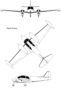 Em 1954, Stelio Frati projetou o Pasotti F.6 Airone [en] para a Pasotti, sediada na Bréscia. Era um bimotor de asa baixa cantilever de quatro lugares, equipado originalmente com dois motores Continental C90 de quatro cilindros e 90 hp (67,1 kW) cada, com hélices de passo fixo de duas pás.[13] No mesmo ano, começaram os testes do protótipo. Em 1956, o projeto foi modificado para utilização de motores Walter Minor [en] de quatro cilindros, com potência de 105 hp (78,3 kW) cada, equipados com hélices de passo variável. Havia também versões com motores Lycoming O-290 [en] de 140 hp (104 kW), também com hélices de passo variável. O trem de pouso era triciclo e retrátil, a envergadura de 10,6 m (34,8 ft) e o comprimento de 7,25 m (23,8 ft). Utilizando motores Lycoming O-290, a velocidade de cruzeiro era de 265 km/h (165 mph), com velocidade máxima de 310 km/h (193 mph). A autonomia era de 1 150 km (715 mi), razão de subida de 244 m/min (13,4 ft/s) e teto operacional de 4 877 m (16 000 ft). O Pasotti F.6 Airone nunca chegou a ser produzido em série, sendo produzidos apenas protótipos.[14][15]